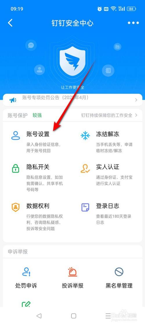 点击“账号设置”。
