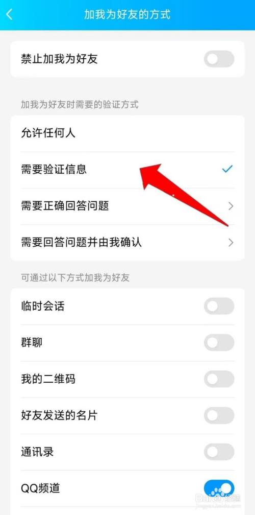 6.最后,在验证方式里,选择加摰友要验证的方式