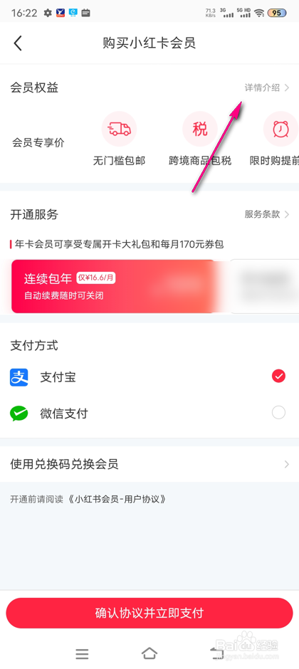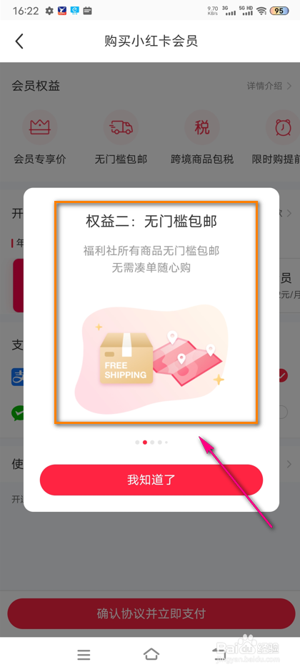界面跳腊彩出弹框,即可查看小红书会员权益详情。