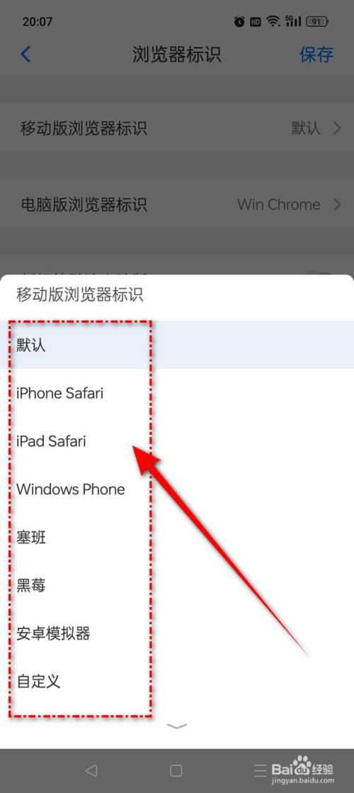 点选“默认”、“iPhone Safari”、“iPad Safari”、“Windows Phone”、“塞班”、“黑莓调物宋”、“安卓模拟器”或“自界说”即可。