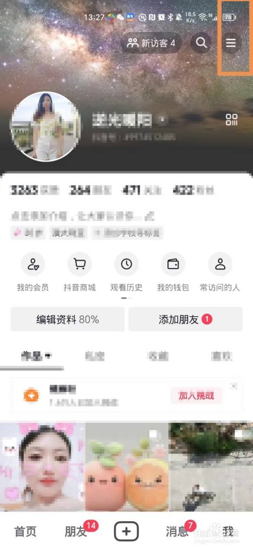 然后点击页面上三条线
