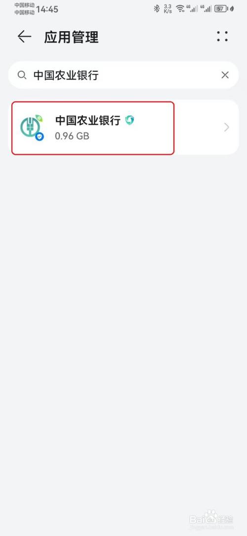 在应用办理页面,搜刮选择【中国农业银行】选项。