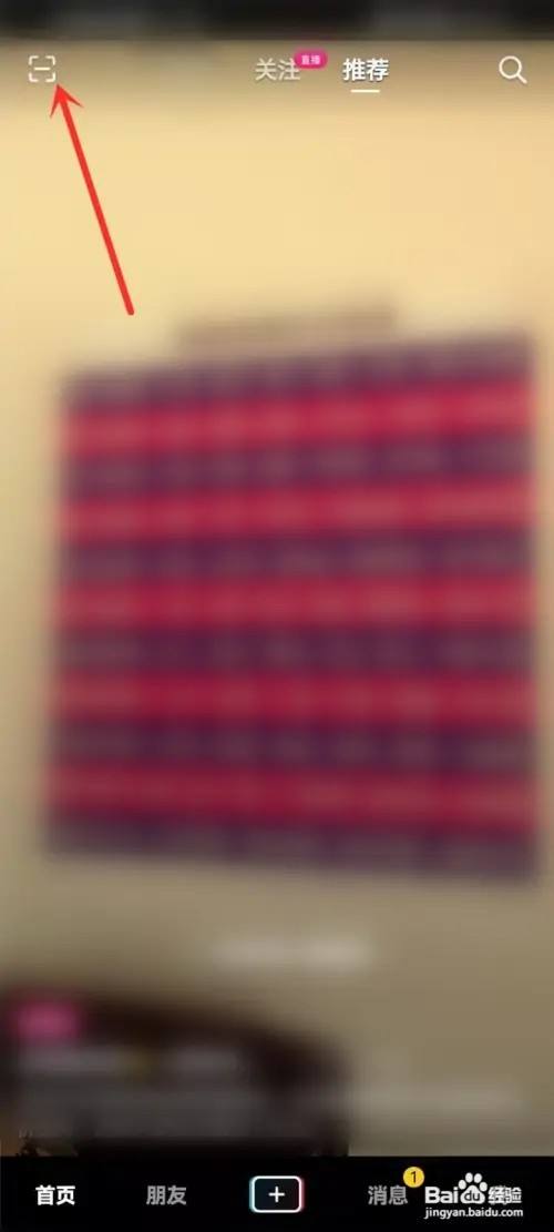 END打开抖音App首页,点击左上角【扫一扫】图标。
