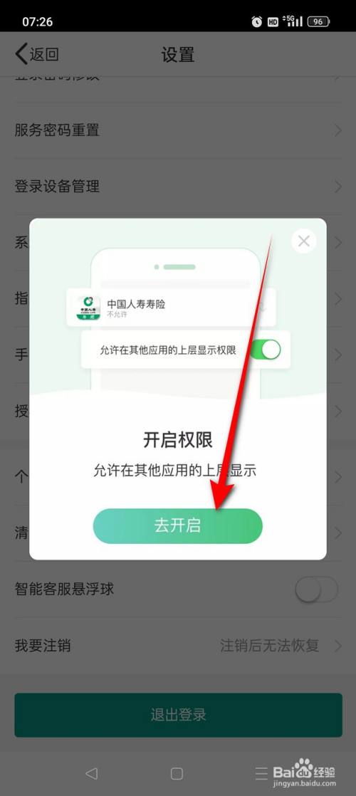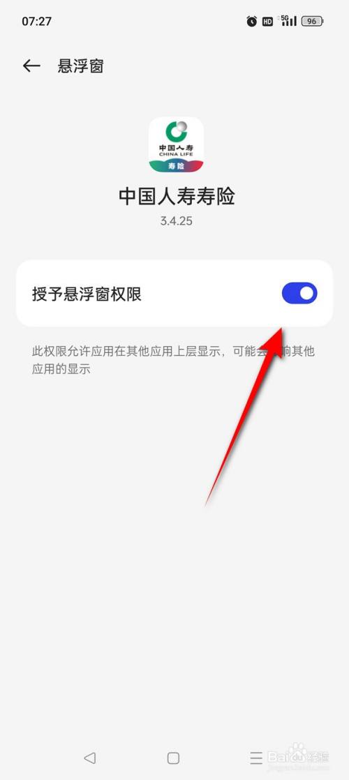 将“授予悬浮窗权限”旁的小滑块点亮。