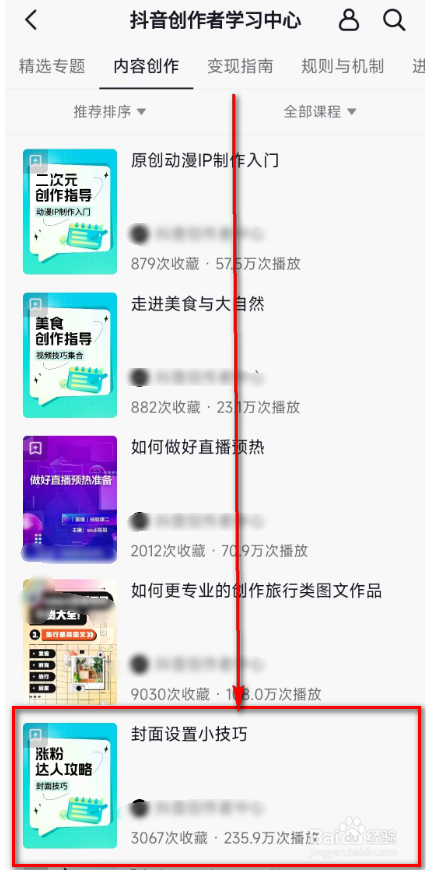 5.进入到抖音创作者中间页面后,点击: 进修中间。