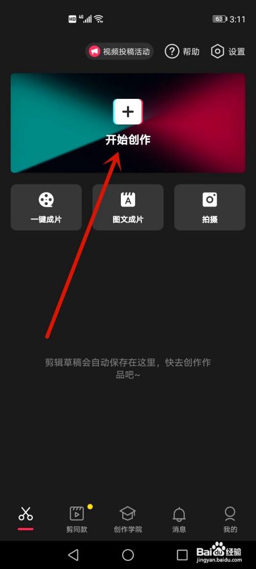 1、打开手机上剪映APP,打开起头创作。