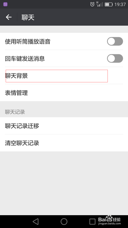 进入设置内找到【谈天】--【谈天配景】