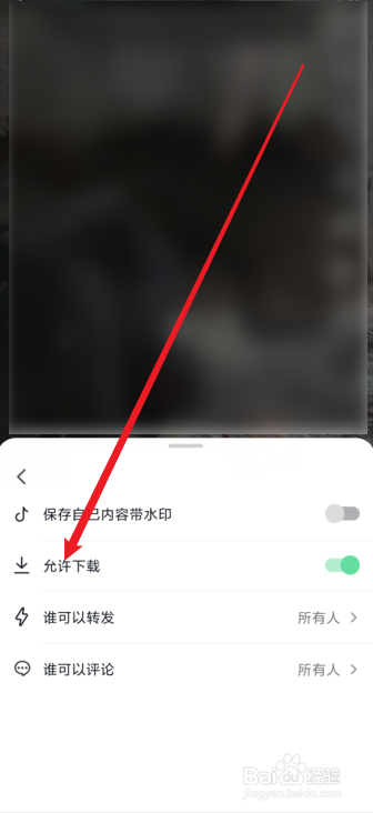 最后,封闭许可下载选项后面的开关按钮,就可以克制别人下载生存本身的视频了