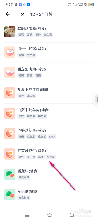 点击对应的辅食。