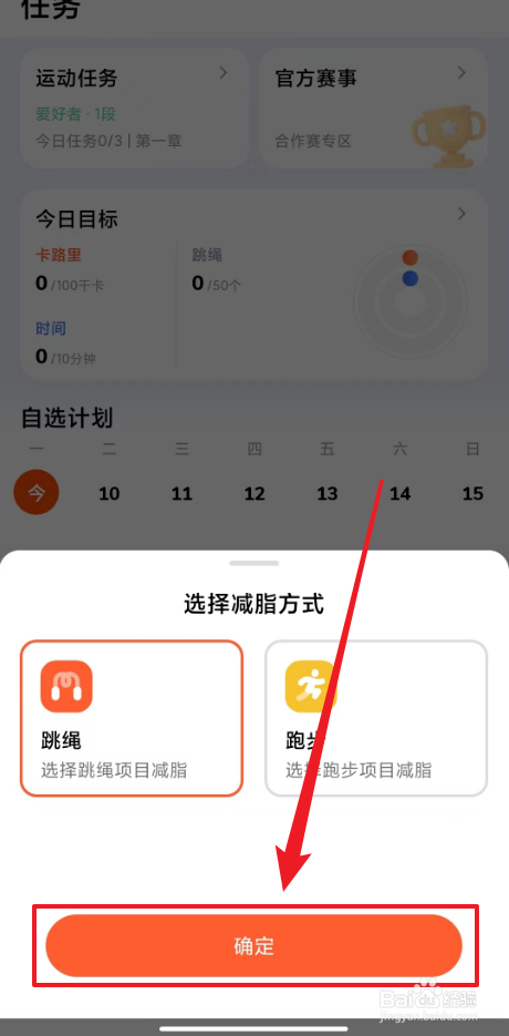 鄙人图页面中,选择需要减脂的方式,点击【确定】按钮。