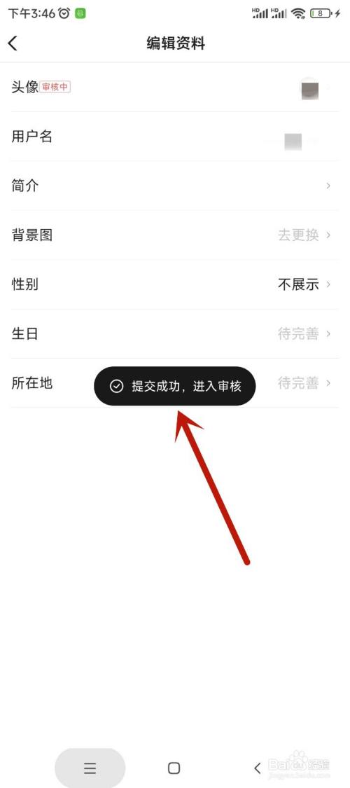 点击确认后,页面提醒提交乐成,等候体系审核经由过程后,即暗示个人头像已经修改乐成。