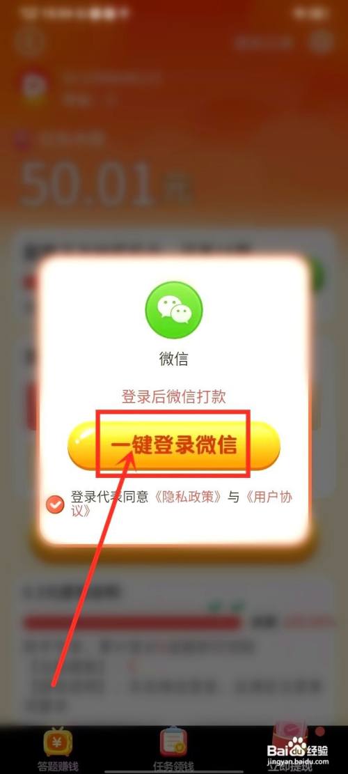 在弹出的窗口中进入一键登录微信按钮。