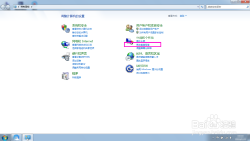 在节制面板界面,点击“外不雅和个性化”下的“更改桌面配景”选项。