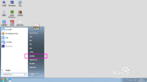 然后在弹出的菜单点击“节制面板”选项。