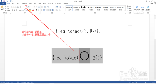 选中域代码中的边框,反复点击【起头】字体栏中的【增大字号】按钮,直至合适巨细。