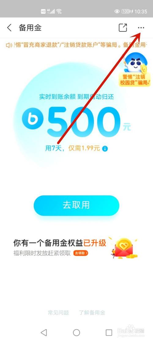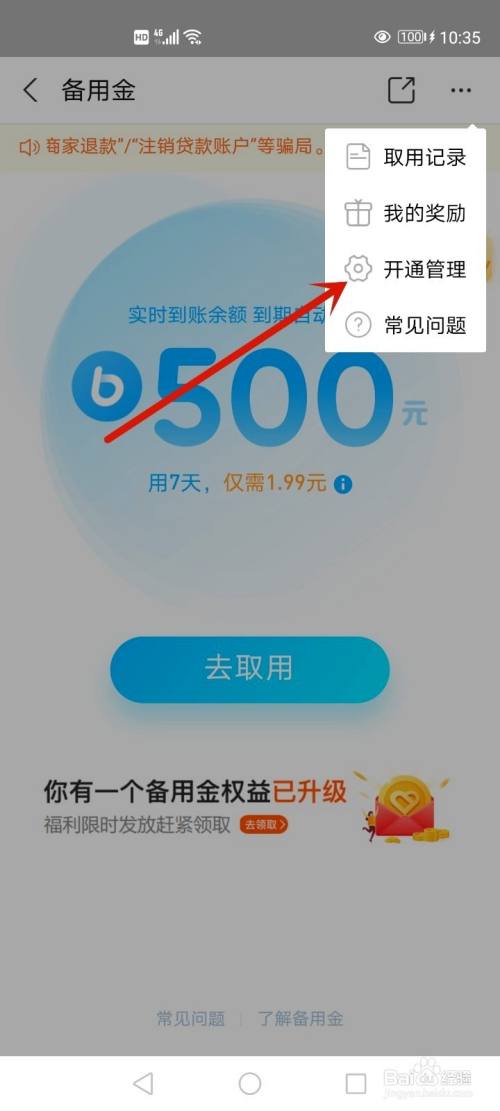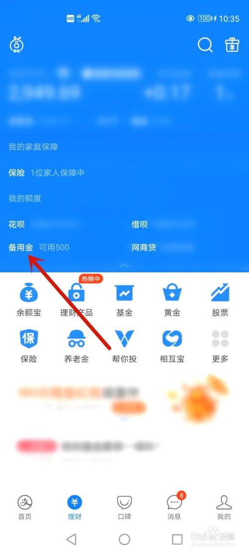 打开手机上支付宝APP,打开备用金。