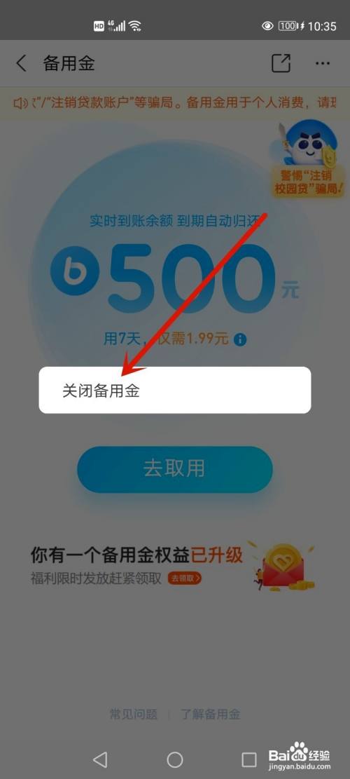 打开封闭备用金。