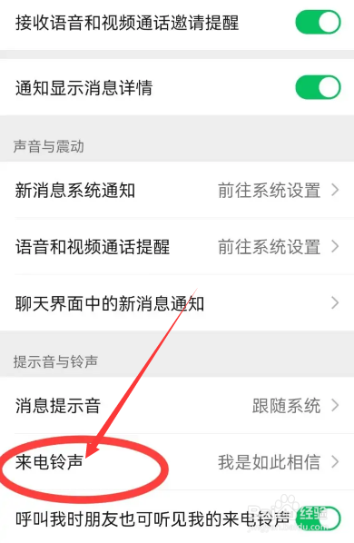 接着点击【来电铃声】选项。