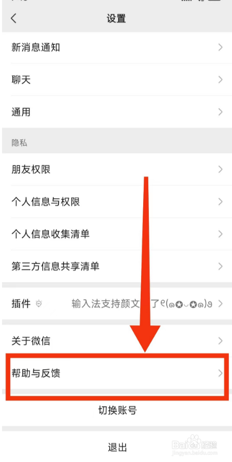 5.进入到帮忙与反馈页面后,点击:通信录。