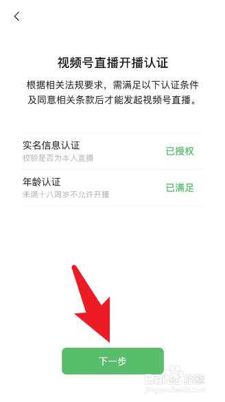 进入【视频号直播开播认证】页面,点击【下一步】