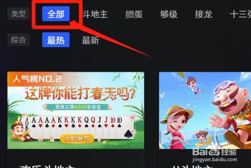 点击【全数】,如图。这样,我们就可以看到全数牌类游戏有什么啦~