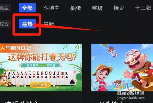 点击【最热】,如图。这样,我们就可以看到最热的牌类游戏有什么啦~