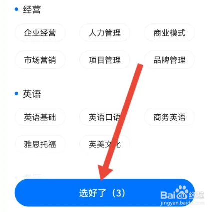 进入下面的界面,然后选择感乐趣的标签,在国何屈点击【选好了】暗蕉,如图所示。