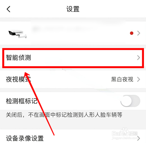 进入设置页面后,点击【智能侦测】。
