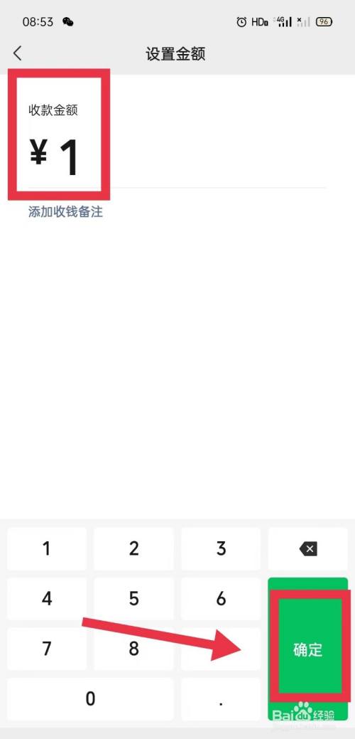 设置金额页面,输入收条目金额,点击【确定】选项。
