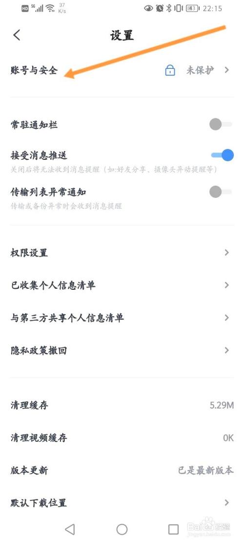 找到上选光面的账号与安全。