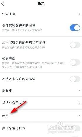 之后点击帐号。