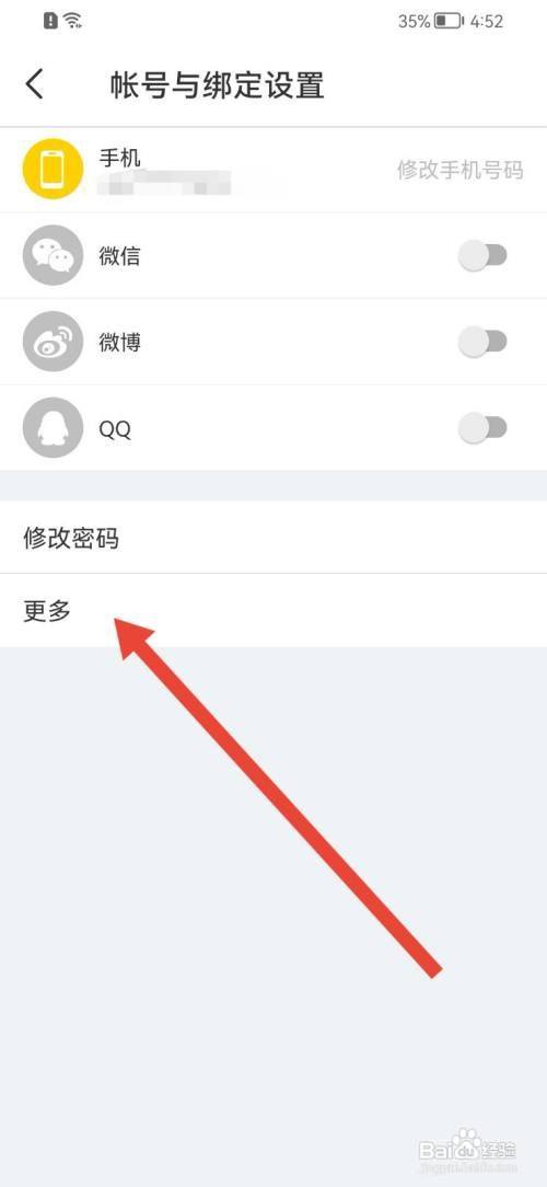 进入账号与绑定设置窗口,点击【更多】,继续点击【刊出账号】。