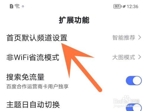 打开头页默认频道设置。