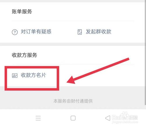 账单信息页面,点击【收条目方手刺】选项。