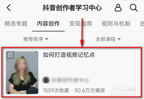 5.进入到抖音创作者中间页面后,点击: 进修中间。