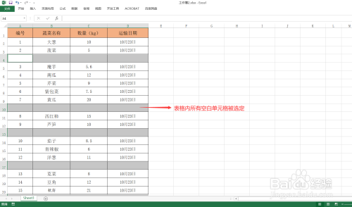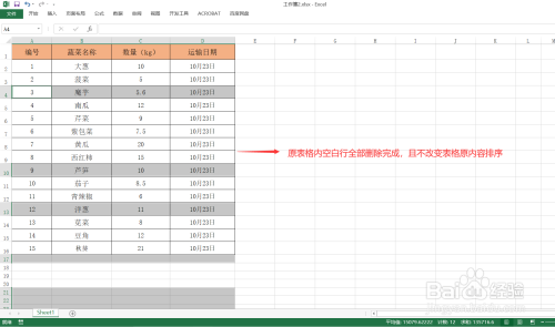 表格内所有空缺行被筛选出来,全数选中空缺行同一删除即可。