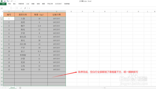 表格排序完当作,空缺行全数移到了表格的最后位置,同一删除即可。