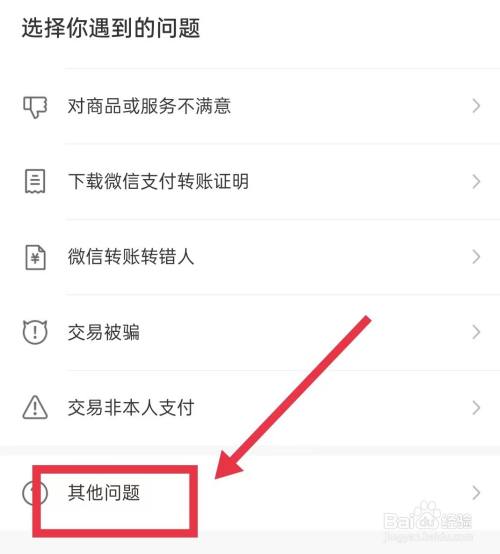 其他问题页面,点击【投诉收条目方】选项。