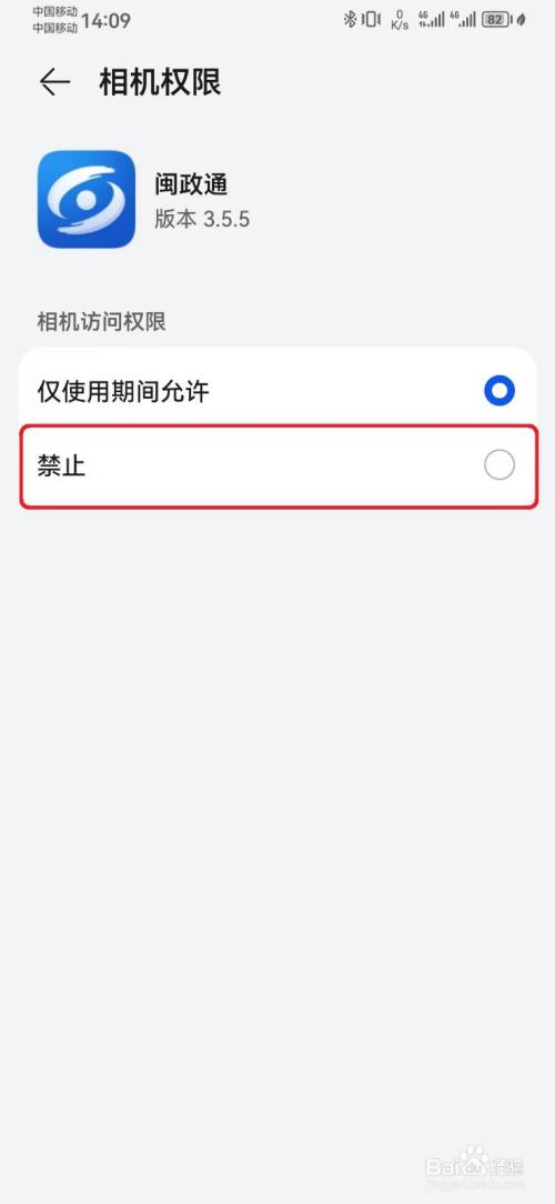 在相机权限页面,选择【克制】闽政通相机点击权限。