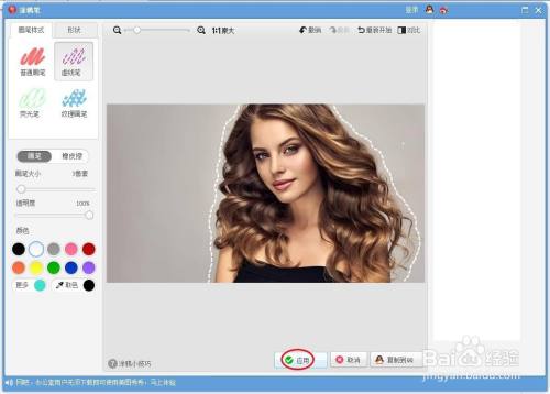 第五步:在图片中,按住鼠标左键,沿着人物边沿移动,就完当作使命描边操作了,单击下方“应用”按钮。