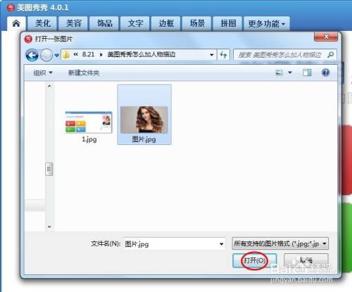第二步:在“打开一张图片”对话框中,选择一张需要加人物描边的图片,单击“打开”按钮。