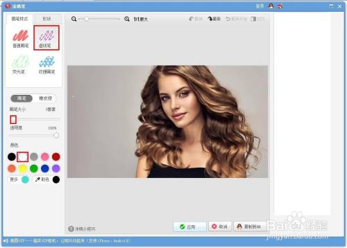 第四步:在“涂鸦笔”对话框中,左侧选择画笔样式、画笔巨细和颜色。