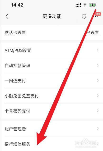 然后,进入招行短信办事页面,点击【账户变更通知】选项