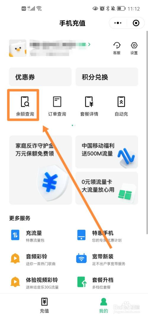 在【手机充值】的【我的】界面中,选择【余额查询】,