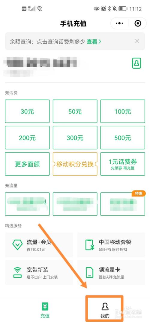 进入【手机充值】界面,点击最下面菜单栏中的【我的】,