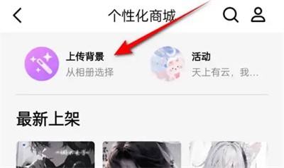 接下来进入到个性化商城里,点击“上传配景”。