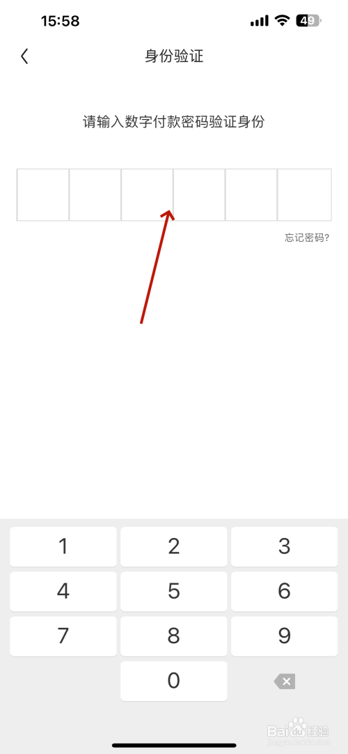 打开身份验证的界面输入“支付密码”就可以。