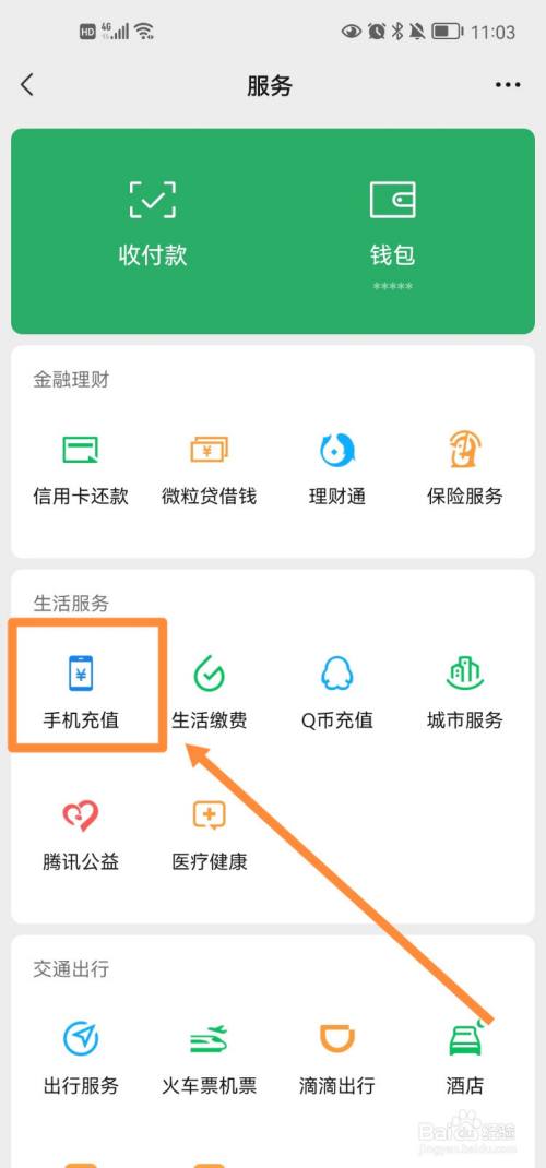 在【办事】界面中,在【生活办事】栏下,选择【手机充值】,