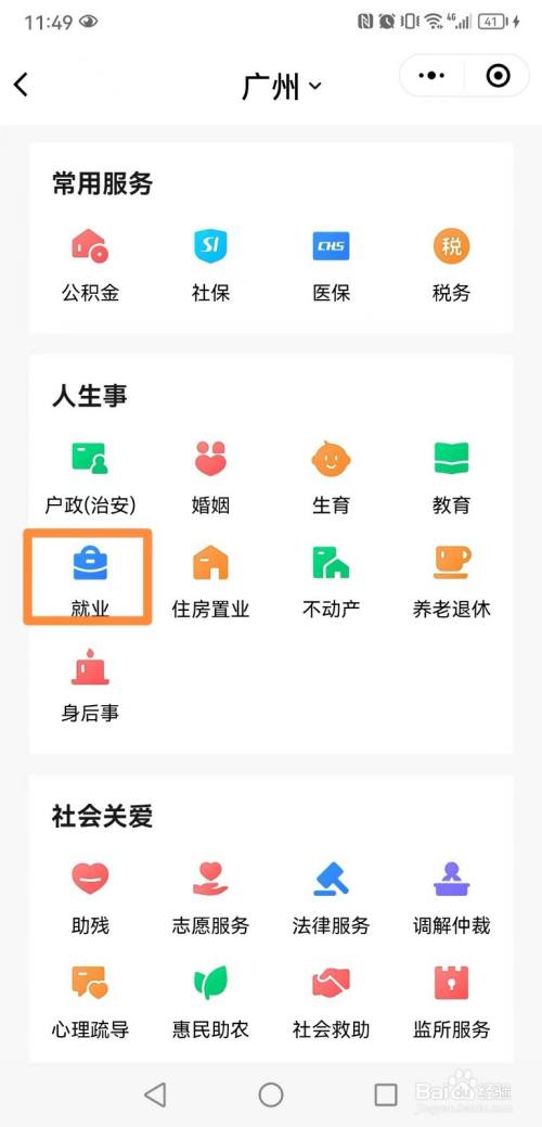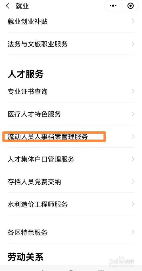 在【就业】的页面,点击【流感人员人事档案办理办事】。
