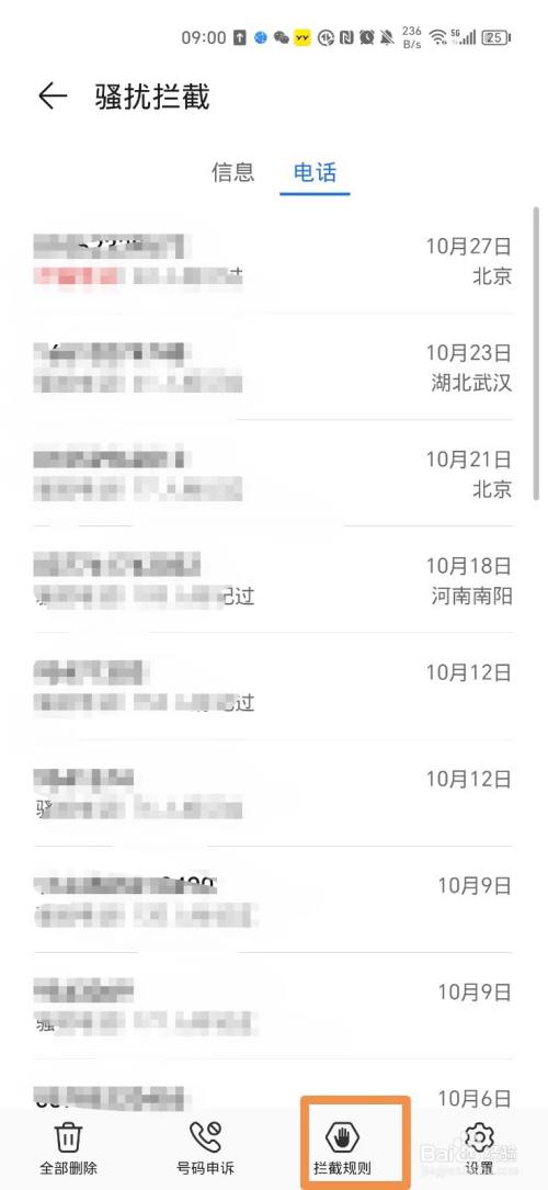 第二步:点击页面上的骚扰拦截